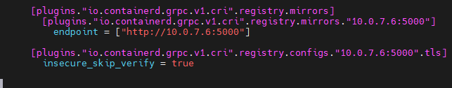 what I’m trying to do is configuring registry where I can pull images pushed to the registry server seperated from k8s server. In order to do that, I will modify my containerd’s config.toml.